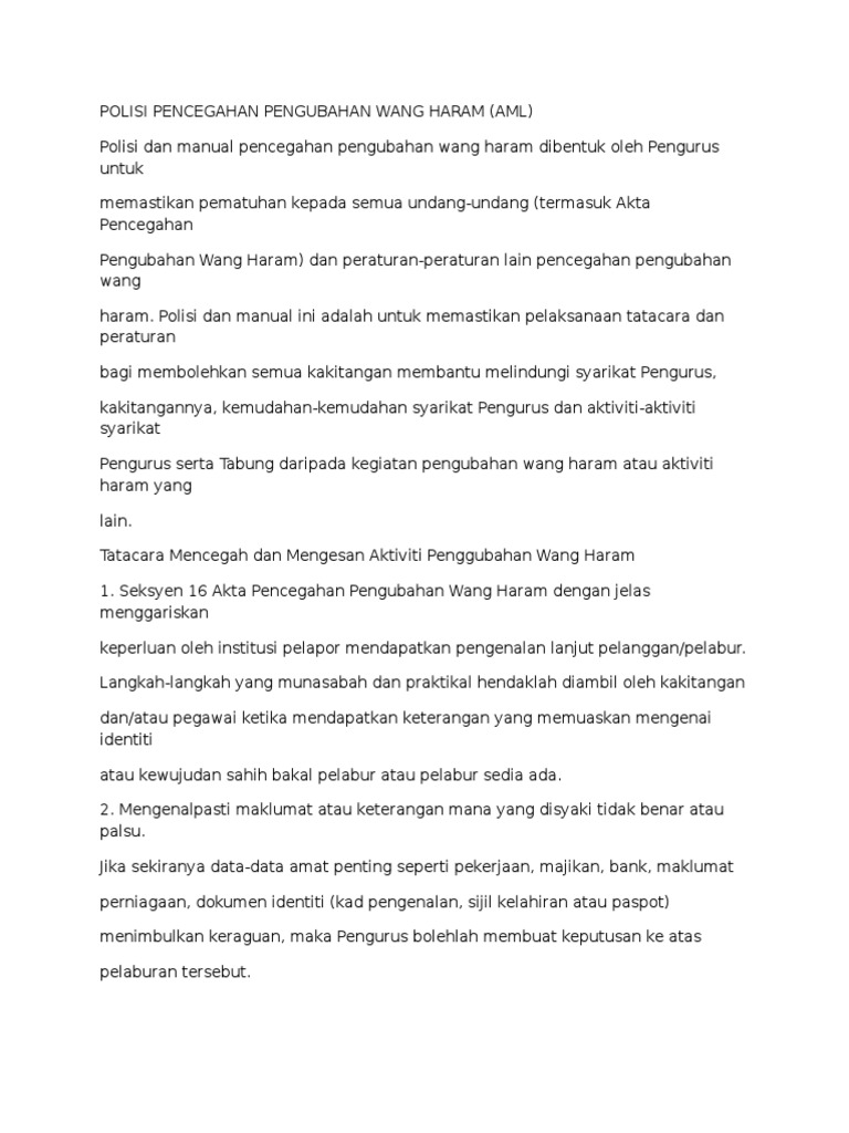 Akta pencegahan pengubahan wang haram 2001 (akta 613) ;: Kes berkenaan disiasat mengikut akta pengubahan wang haram (amla) sprm 2001, katanya. Seksyen 16 akta pencegahan pengubahan wang haram dengan. Menurut penolong gabenor bank negara, abu hasan alshari yahya, rangka kerja perundangan yang ada sekarang ini memberi keupayaan bagi mengukuhkan. Penjenayah dan orang yang tidak diingini 1969 akta 7.