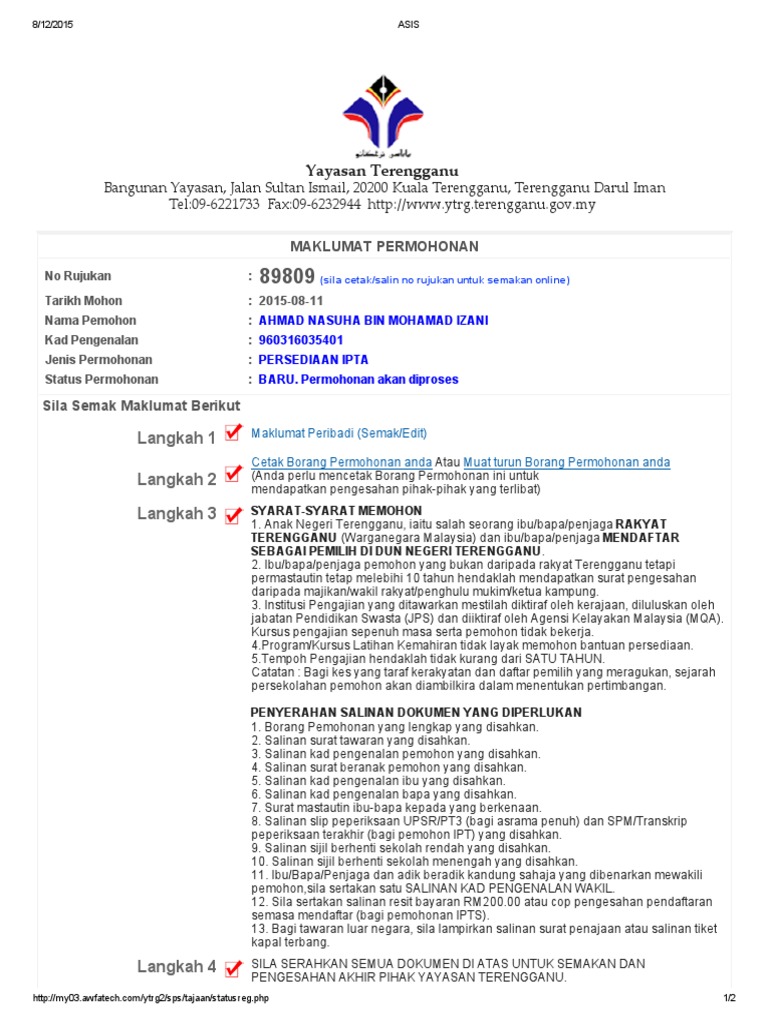 Semakan Online Yayasan Terengganu : Semakan keputusan tawaran sma negeri terengganu ambilan 2021.. Boleh cuba juga mohon sma online terengganu. Info pendidikan semakan pendaftaran semakan permohonan upuonline. Permohonan dan semakan permohonan boleh dibuat dari masa ke semasa melalui laman web berikut Kajian oleh iprice, kedai online dengan pengikut instagram tertinggi. Buat semakan bpr melalui sistem online yang disediakan lhdn.